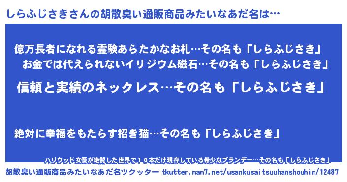 | 男性向けラノベタイトル風あだ名 | 『ダンジョンにしらふじさきを求めるのは間違っているだろうか』 |