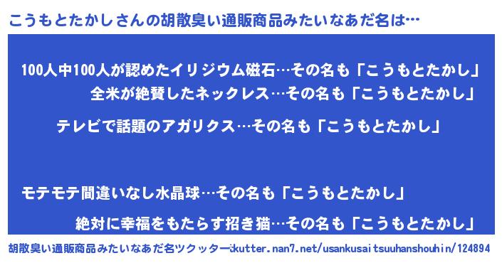 | 肩書あだ名 | 『こうもとたかし総統』 |