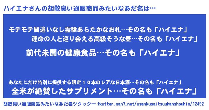 | ヘコむあだ名 | 『ハイエナ(爆)』『ハイっふぃ~』 |