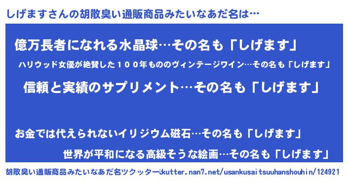 | ヘコむあだ名 | 『しげ太郎』『しげふぇ~』 |