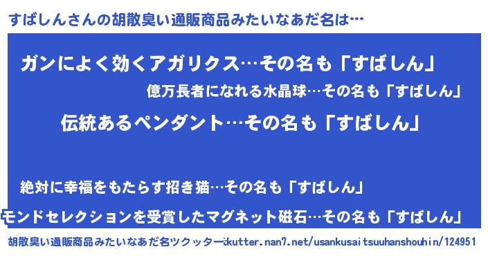 すばしんさんの胡散臭い通販商品みたいなあだ名をツクッター!
