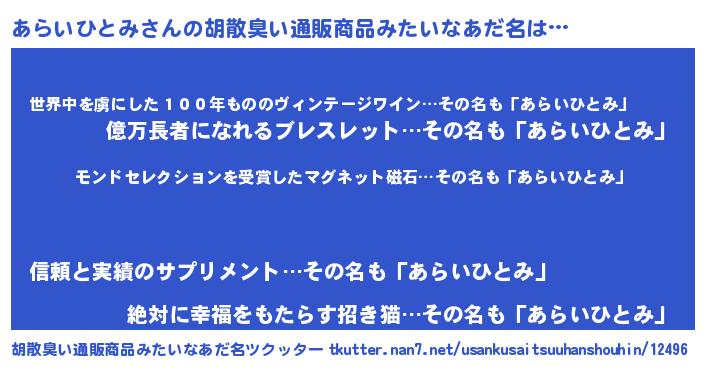 | 男性向けラノベタイトル風あだ名 | 『ノーゲーム・ノーアライヒトミ』 |