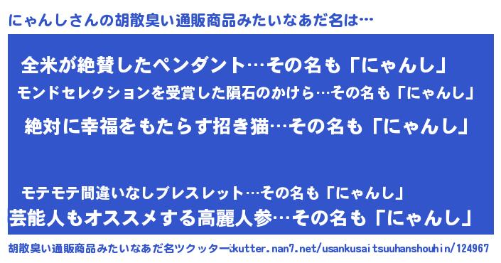 | ヘコむあだ名 | 『にゃんし(笑)』『にゃぷりん』 |
