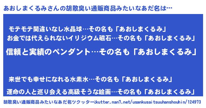 | 欧米人風あだ名 | 『ウサインあおしまくるみ』 |