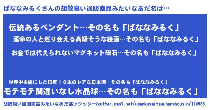 | ヒーロー風カッコイイあだ名 | 『愛の使者ばななみるく』『魔戒騎士バナ』 |