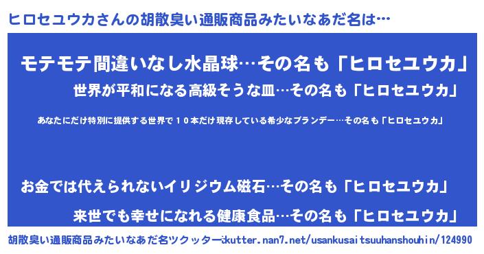| 意味不明あだ名 | 『住所不定無職ヒロセユウカ(84歳)』 |