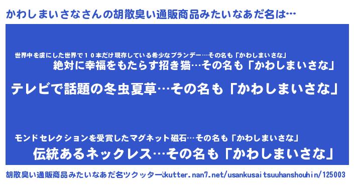 | 意味不明あだ名 | 『自称かわしまいさな』 |