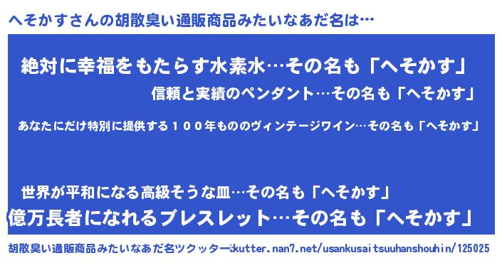 | 欧米人風あだ名 | 『ダレノガレへそかす』 |