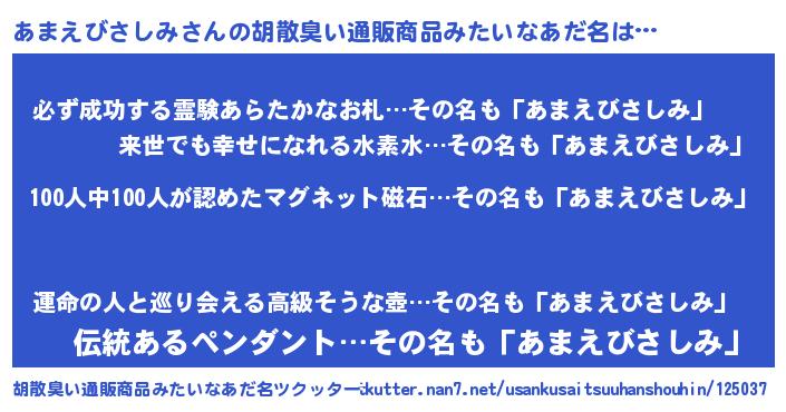 | 男性向けラノベタイトル風あだ名 | 『はたらくあまえびさしみさま!』 |