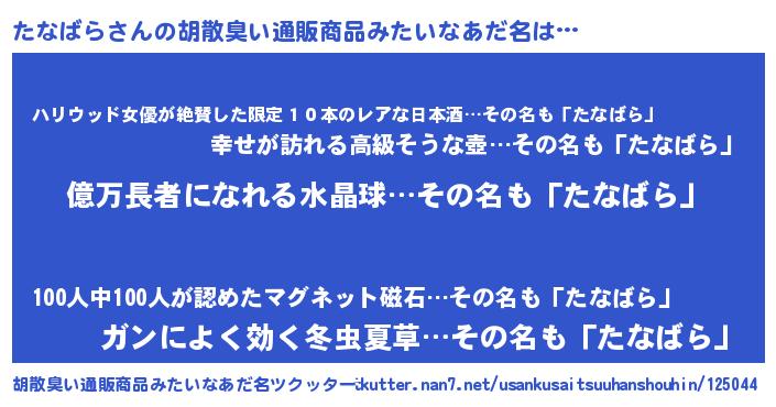 | ヘコむあだ名 | 『たなもー』『牛乳』『たなぷりん』 |