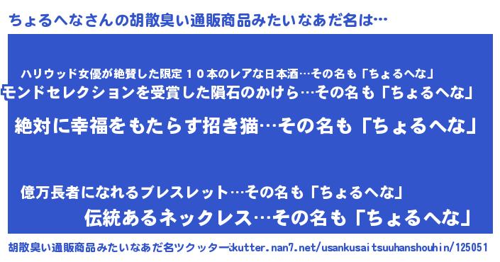 | 伝説のあだ名 | 『聞きしに勝る吟遊詩人ちょるへな』 |