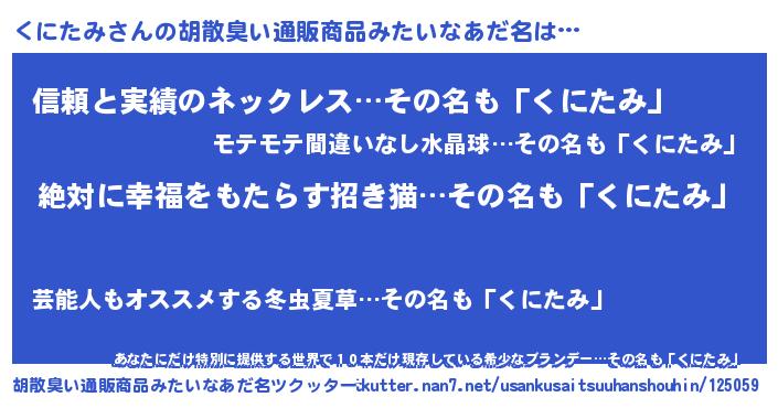 | ヘコむあだ名 | 『くにたみ(笑)』『くにぷりん』 |