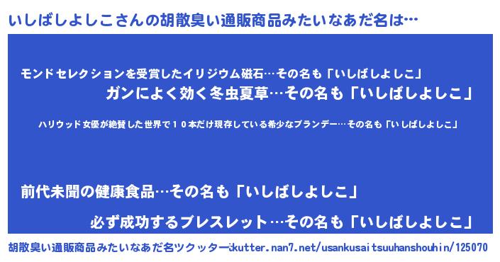 | 意味不明あだ名 | 『住所不定無職いしばしよしこ(86歳)』 |