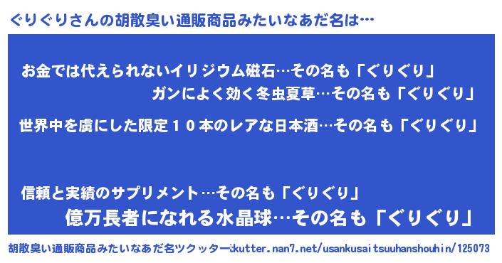| 意味不明あだ名 | 『住所不定無職ぐりぐり(62歳)』 |