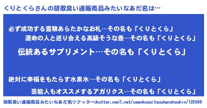 | 意味不明あだ名 | 『とにかく怪しいくりとくら』 |