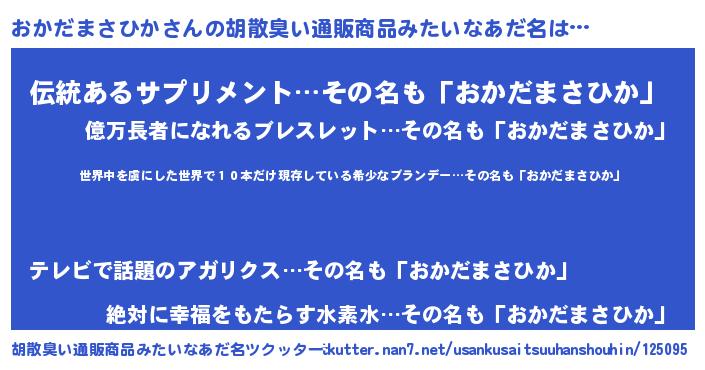 | 意味不明あだ名 | 『住所不定無職おかだまさひか(71歳)』 |