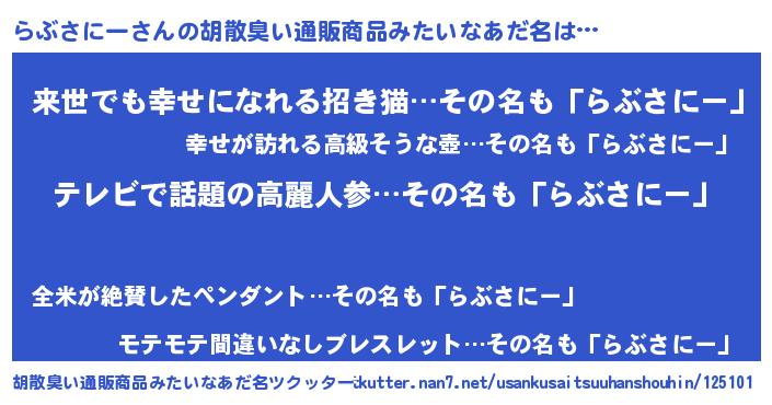 | 意味不明あだ名 | 『自称らぶさにー』『永久保存らぶさにー』 |