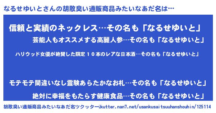 | ヘコむあだ名 | 『なるっ子』『なるせゆいと(笑)』 |