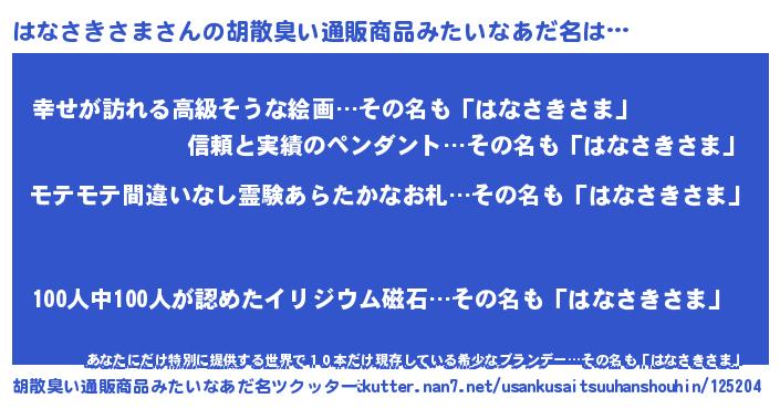 | 男性向けラノベタイトル風あだ名 | 『ハナサキサマアートオンライン』 |