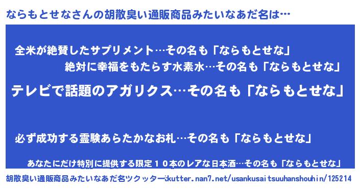 | 意味不明あだ名 | 『自称ならもとせな』 |