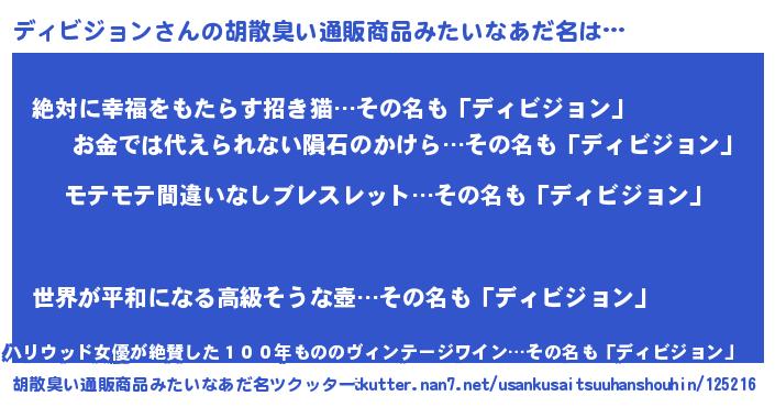 | ヘコむあだ名 | 『ディにー』『ディビジョン(笑)』 |