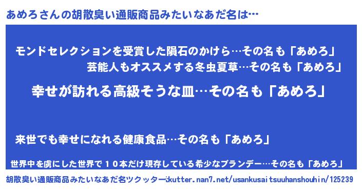 | 肩書あだ名 | 『あめろ国家主席』『あめろ学部長』 |