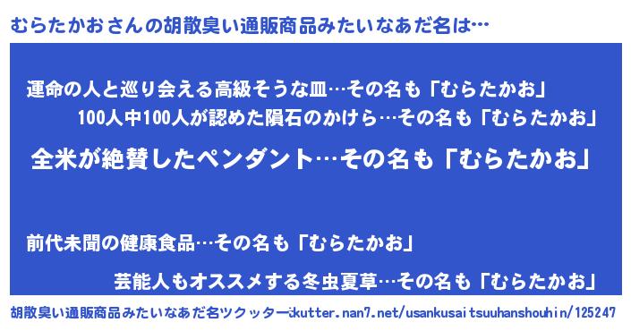 | 意味不明あだ名 | 『とにかく怪しいむらたかお』 |