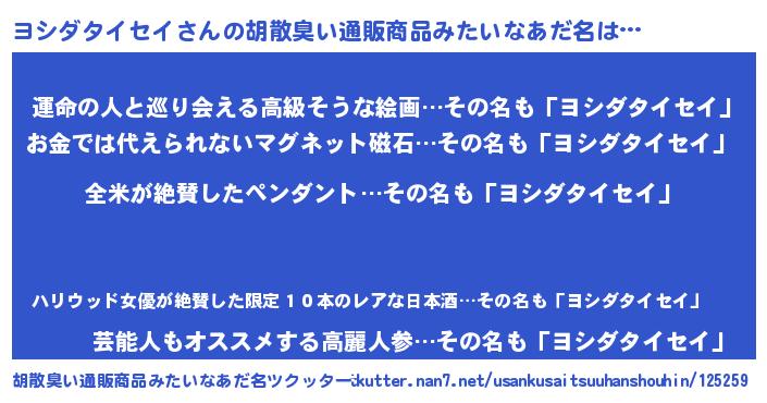 | 肩書あだ名 | 『ヨシダタイセイリーダー』 |