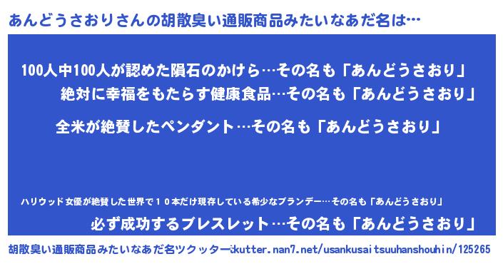 | 意味不明あだ名 | 『とにかく怪しいあんどうさおり』 |