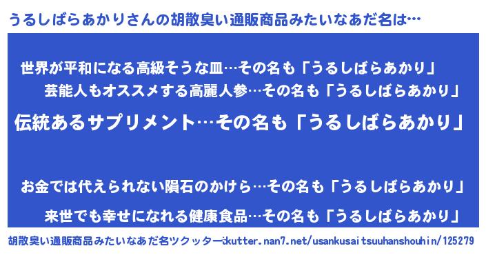 | 意味不明あだ名 | 『とにかく怪しいうるしばらあかり』 |