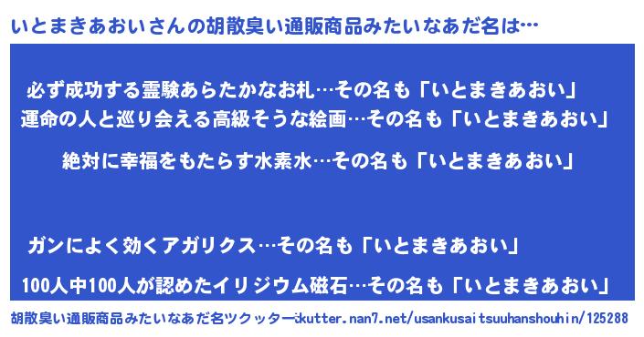 | ヘコむあだ名 | 『いとまきあおい(遠い目)』『いとっふぃ~』 |
