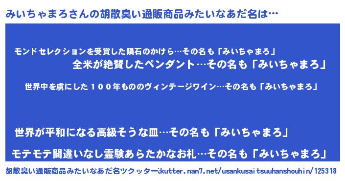 | 男性向けラノベタイトル風あだ名 | 『転生したらみいちゃまろだった件』 |