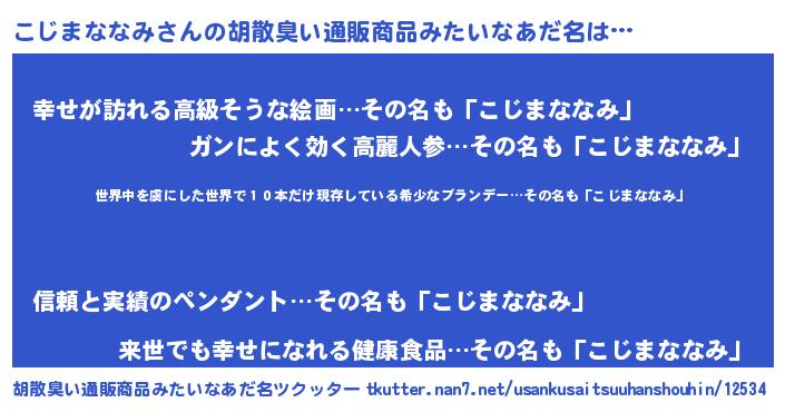こじまななみさんの胡散臭い通販商品みたいなあだ名をツクッター!