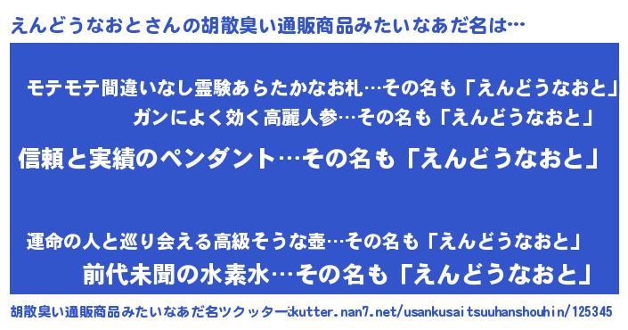 | 欧米人風あだ名 | 『アンジェラ・えんどうなおと』 |