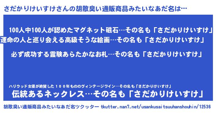 さだかりけいすけさんの胡散臭い通販商品みたいなあだ名をツクッター!