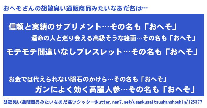 | ヒーロー風カッコイイあだ名 | 『スーパーオヘソ』『幻影騎士オヘ』 |