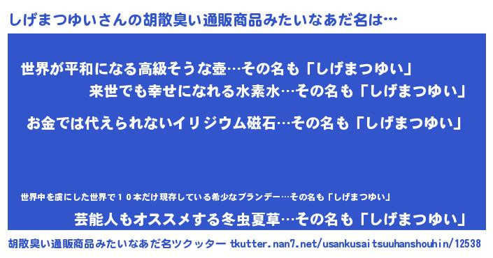 | ヘコむあだ名 | 『豆乳』『しげまつゆい(笑)』 |