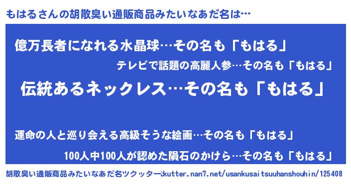 | 意味不明あだ名 | 『とにかく怪しいもはる』『自称もはる』 |