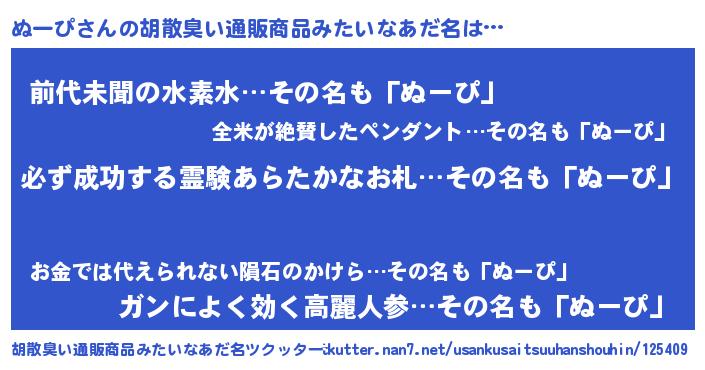 | 意味不明あだ名 | 『ペロリンぬーぴ』『永久保存ぬーぴ』 |