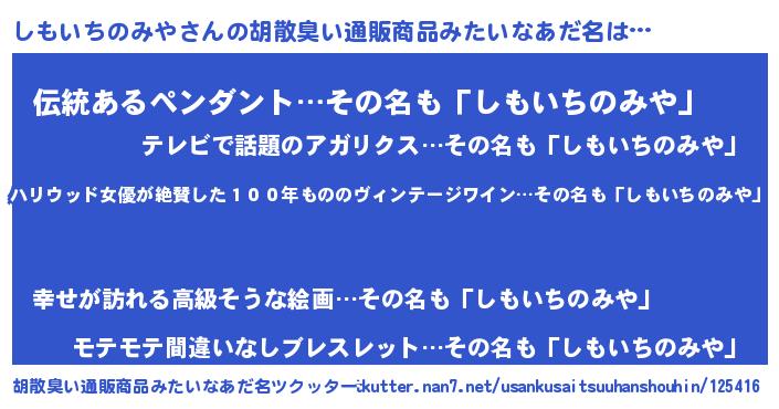 | 意味不明あだ名 | 『住所不定無職しもいちのみや(11歳)』 |