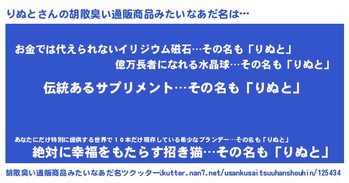 | ヘコむあだ名 | 『りぬを』『りぬと(爆)』『牛乳』 |