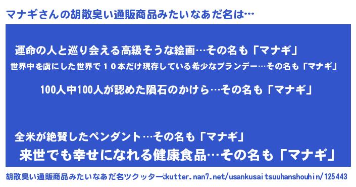 | ヒーロー風カッコイイあだ名 | 『正義の使者マナギ』『ネオマナギ』 |