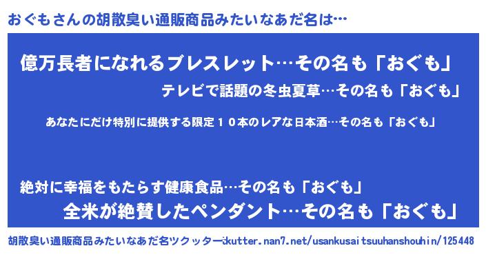 | 意味不明あだ名 | 『住所不定無職おぐも(50歳)』『自称おぐも』 |