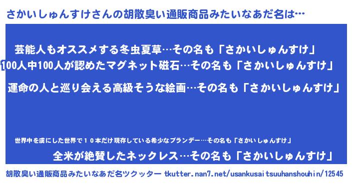 | 肩書あだ名 | 『さかいしゅんすけ総理大臣』 |