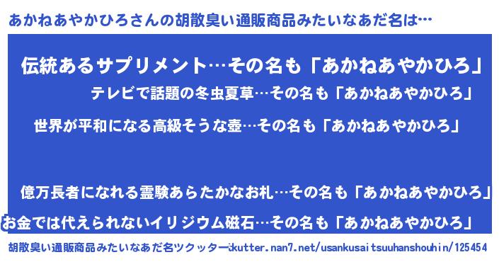 | 肩書あだ名 | 『あかねあやかひろ大統領』 |