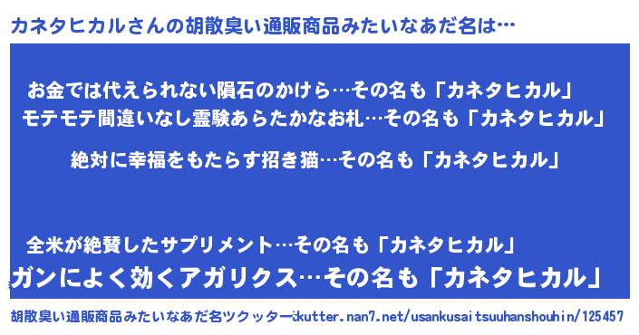 | 意味不明あだ名 | 『永久保存カネタヒカル』 |