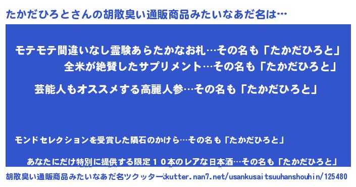 | 肩書あだ名 | 『たかだひろと閣下』『たかだひろと店長』 |
