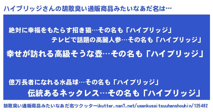 | 意味不明あだ名 | 『ハイブリッジフォーエバー』 |