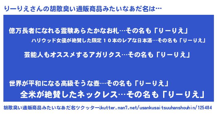 | 意味不明あだ名 | 『自称りーりえ』『ペロリンりーりえ』 |
