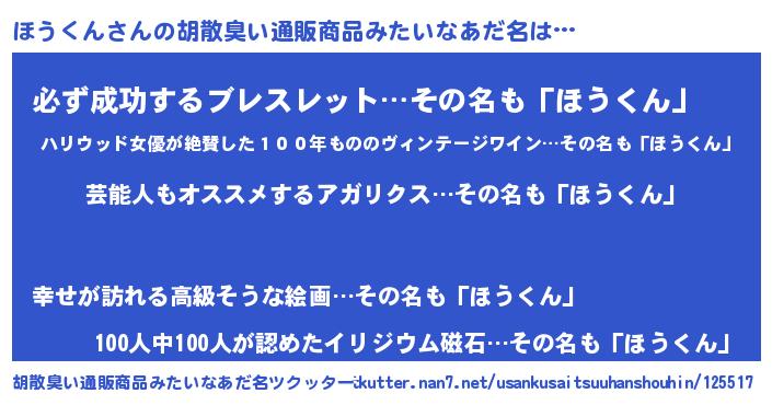 | 男性向けラノベタイトル風あだ名 | 『Re:ほうくんから始める異世界生活』 |